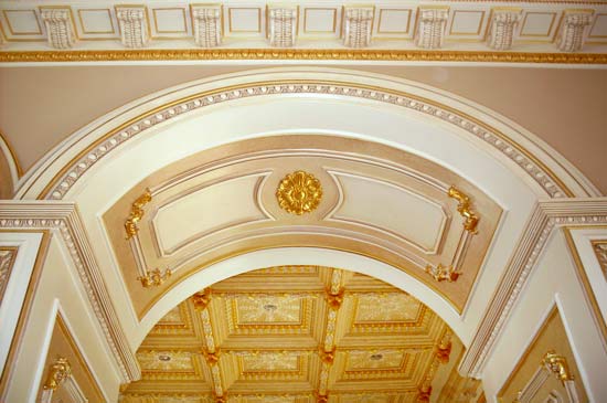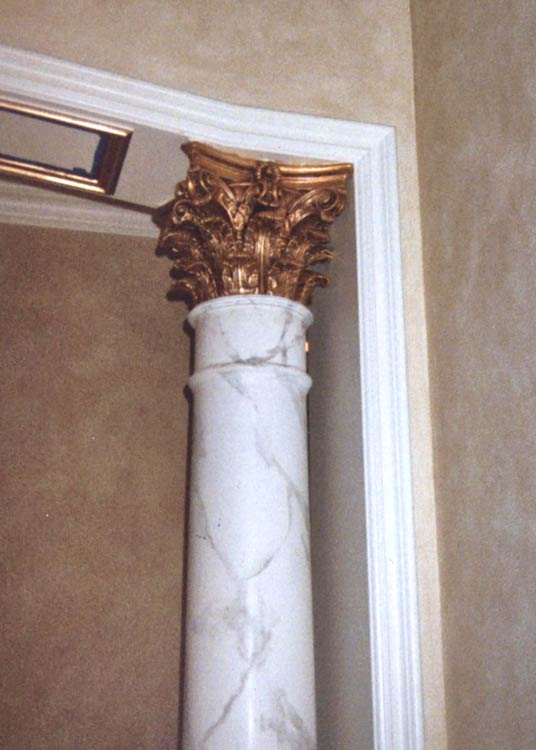 They are manufactured as splits and are designed to wrap around an existing structural support post. Cap and Base are custom painted to match interior lights and tones. Arches are canvas for ornamentals and custom paint finish.